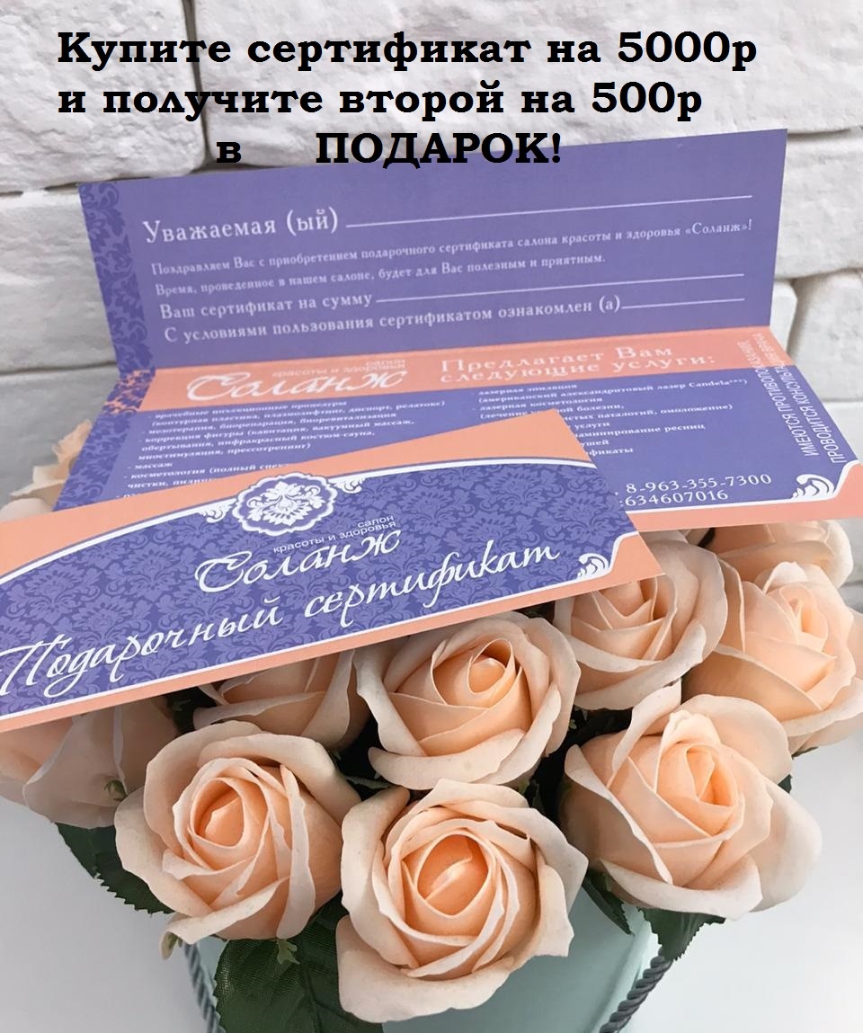 При покупке одного или нескольких сертификатов на общую сумму 5000 рублей - сертификат на 500 р В ПОДАРОК!