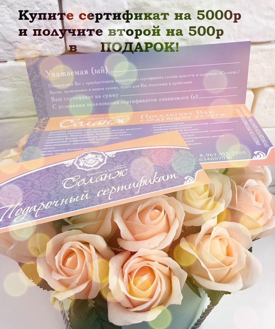 При покупке одного или нескольких сертификатов на общую сумму 5000 рублей - сертификат на 500 р В ПОДАРОК!